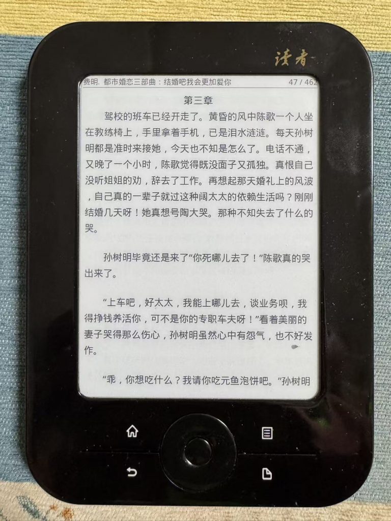 我这个古董阅读器,里面有很多的书籍。姑且不说读者期刊吧,小说可能就有几十本。